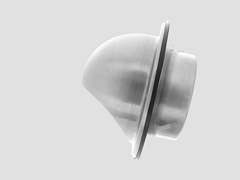 Круглая наружная решетка особой формы для защиты от осадков и с сеткой от насекомых.